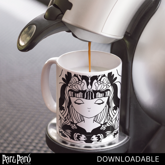 Mystical Young Celestial Lady Black and White PNG Sublimation Digital Wall Art