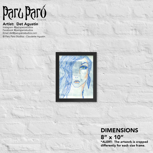 Blued Woman Face Earring Framed Poster