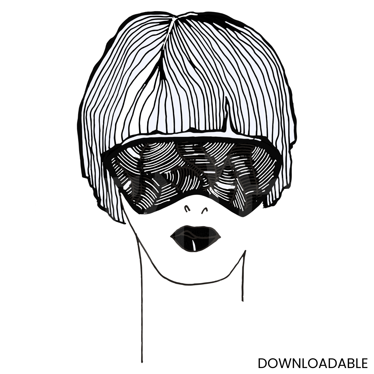 Bring contemporary elegance into your home with this Abstract Woman Printable Wall Art PNG sublimation. Featuring a stunning one-line drawing of a woman in glasses, this black-and-white digital art embodies minimalist beauty. Perfect for modern home or office decor, this striking female portrait adds a touch of sophistication to any space, creating a timeless and artistic atmosphere.
